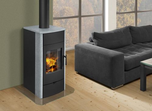 Малогабаритное устройство чешского производства привлекает эргономичностью конструкции, в которой есть место классической топке, защищенной прямым стеклом и чугунной изящной дверцей. В нижней части размещается дровница, по форме стилизованная под старинные аналоги печи. Среди преимуществ устройства относительно небольшой вес 157 кг, компактные размеры, тонкая регулировка первичного воздуха, симпатичная однотонная керамическая облицовка, широкий выбор расцветок.